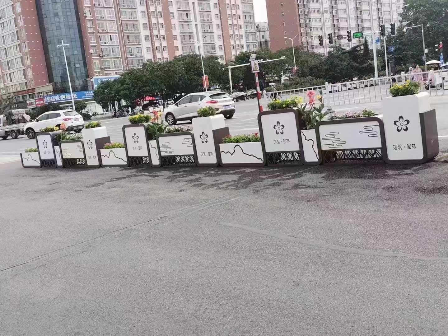 從美觀性來看,鐵藝花箱造型豐富多樣,可滿足不同道路風格與場景的需求。在沈陽的歷史文化街區,古樸典雅、帶有傳統花紋裝飾的鐵藝花箱與古色古香的建筑相得益彰,仿佛將人們帶回到往昔歲月;而在現代化的商業中心或交通干道,簡約時尚、線條流暢的鐵藝花箱則彰顯出都市的活力與高效。其獨特的金屬質感與周圍的花草綠植相互映襯,形成了一種剛柔并濟的視覺美感,極大地提升了城市道路的整體形象。